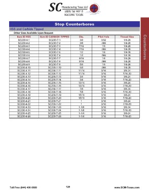 Item ID HSS Item ID CARBIDE TIPPED Dia. Pilot Hole Thread Size Counterbores
