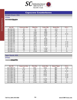 Item ID Capscrew Size Pilot Dia. Cutter Dia. Shank Taper O.A.L.