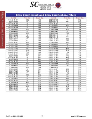 Item ID Pilot Dia. Shank Dia. Item ID Pilot Dia. Shank Dia.