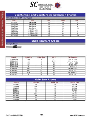 Item ID Arbor Dia. Arbor Size O.A.L. Fits Reamers